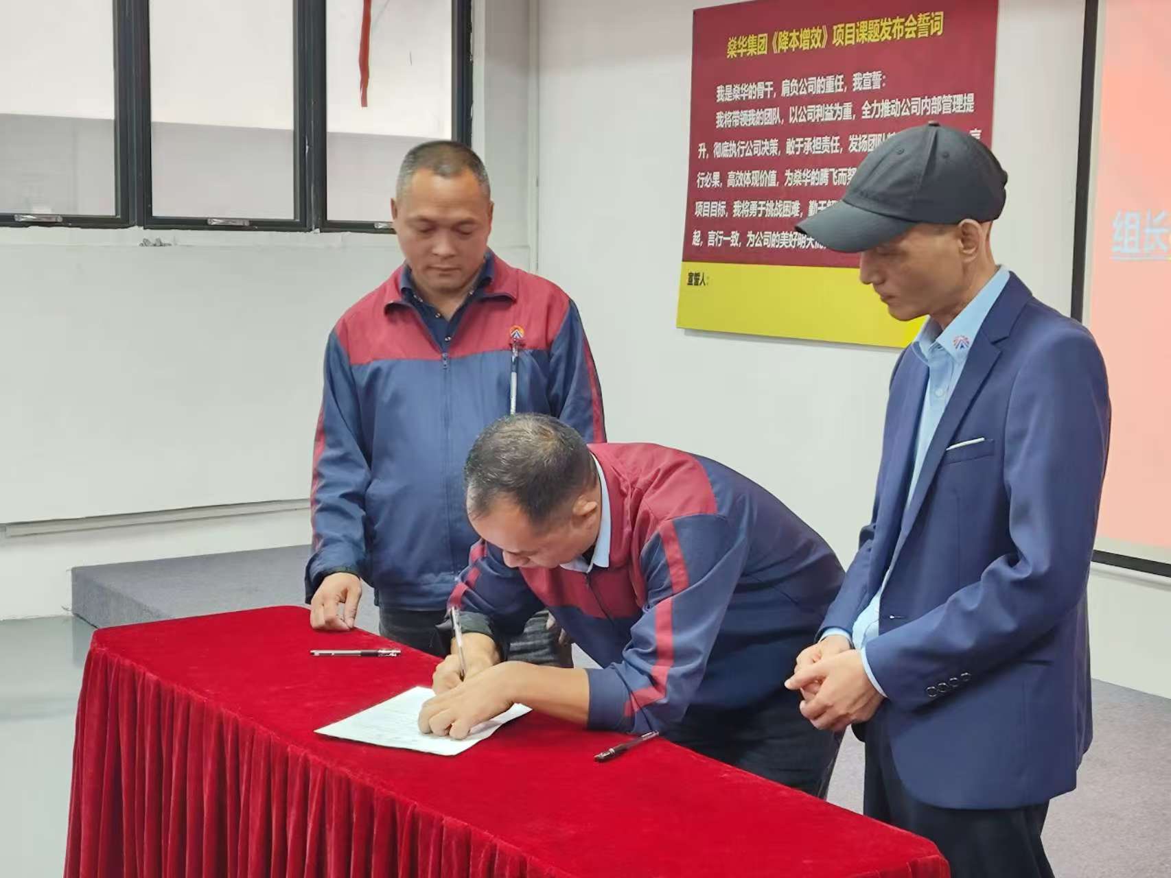 至此,項(xiàng)目從決策到執(zhí)行的組織體系全面建立,權(quán)責(zé)清晰,重任在肩。 三、承諾于心,擔(dān)當(dāng)于行 在目標(biāo)承諾環(huán)節(jié),各改善小組負(fù)責(zé)人依次上臺(tái),鄭重簽署課題目標(biāo)承諾書。每一筆簽名,不僅代表對(duì)目標(biāo)的公開承諾,更承載著對(duì)成果的責(zé)任與擔(dān)當(dāng),展現(xiàn)出團(tuán)隊(duì)使命必達(dá)的決心。